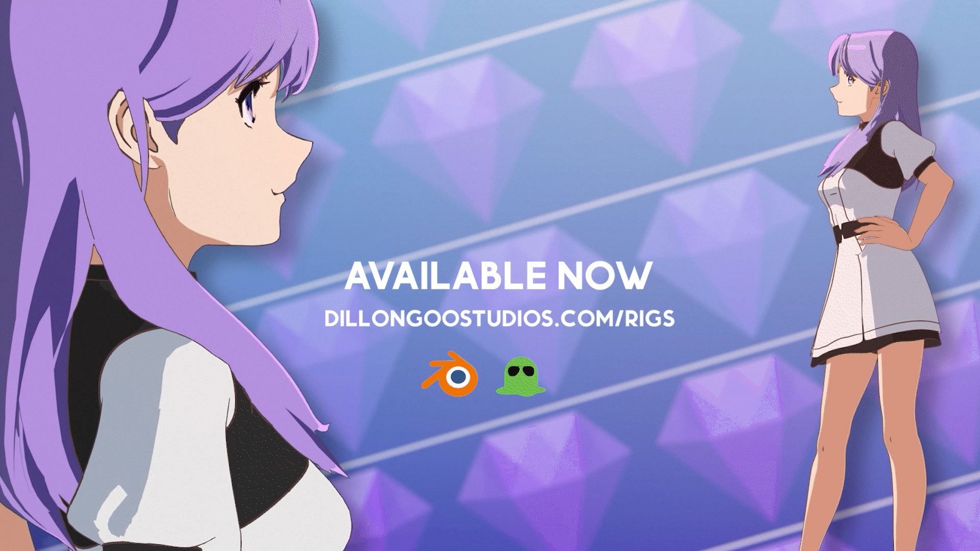 AMETHYST is a Professional 3D Anime Rig. Made for Blender. Created by DillonGoo Studios.